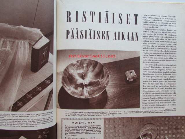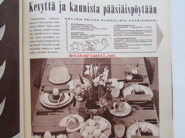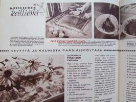Kotiliesi 1961 nr 6 Maaliskuu -mm. 20 uskollista työvuotta, Risti seisoo maanpiiri vapisee, Ammatinvalinta ovi oikeaan ammattiin, Minun lattiani on toisen katto, Mikä käy meille Pariisin uudesta muodista, Opiskelian elämän toinen puoli, Kirkas kevät, Kevyttä ja kaunista pääsiäispöytään, Pienet leivokset, Millainen puupohjavuoteeseen, Tarkastele kuvista tarkemmin sisältöä.