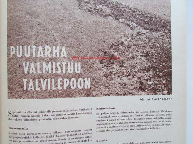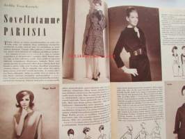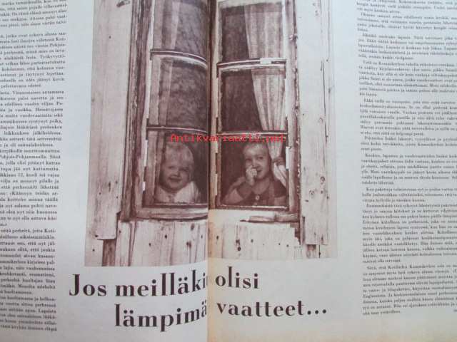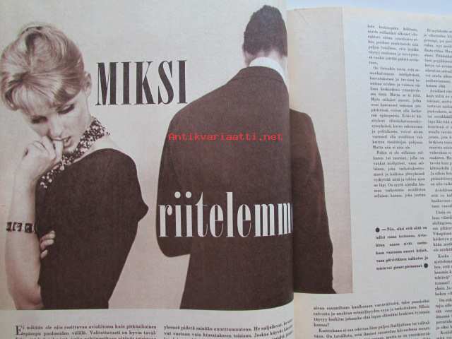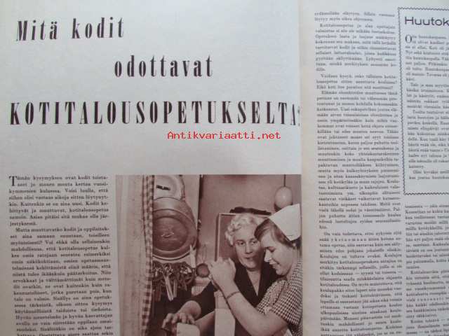 Kotiliesi 1961 nr 19 lokakuu -mm. Mitä kodit odottavat kotitalousopetuksesta, Huutokaupassa, Koti kolmelle, Viherkasvi on talvenkukka, Nukke elää lapsi leikkii, Nuken maailma (aukeamallinen värikuvia) Poikanuken vaatteiden työselitys, Lisävalaisimia on helppo valmistaa, Sovellutamme Pariisia, Perhekuvissa 5 sukupolvea Sodankylästä Marja Leena Korhonen ja Eeva Leena kemppainen jälkikasvuineen. Vihkikuva Aimo Klemola ja Kaija Kölhi. Tarkastele kuvista tarkemmin sisältöä.
