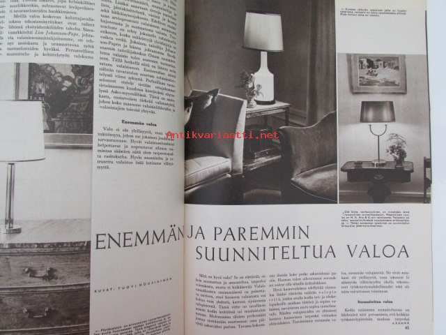 Kotiliesi 1966 nr 1 -mm. Erilaisuuksien tasa-arvoisuus, Kypärämäinen vanhemmat ja koulu yhteisellä asialla, Andersen elää yhä, Ihan yksityisiä ajatuksia sukupuolirooleista vapautumista, Tiberiaan lähtevät Historian vanhin kylpypaikka, Enemmän ja paremmin suunniteltua valoa, Parsin ja paikkaan ja Vahvistan, Tarkastele kuvista tarkemmin sisältöä.21 x 29 cm.