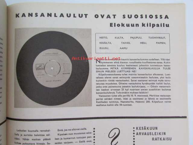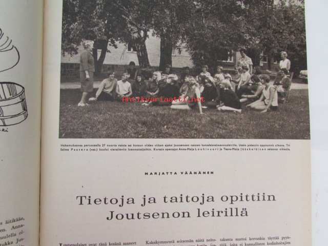 Kotiliesi 1966 nr 16 -mm. Kolme polvea saman tehtaan palveluksessa, Pihkantuoksua tiellä, Ylä-Mattilan ratsastajapatsas, Tyttökin haluaa muuttaa pois kotoaan, Tietoja ja taitoja opittiin Joutsenon leirillä, Runoja keittiön muistokirjasta, Ahvenen käsittely, Riippaomenapuun varjossa, Tarkastele kuvista tarkemmin sisältöä.21 x 29 cm.