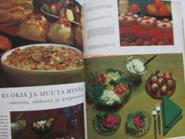 Kotiliesi 1965 nr 16 Elokuu -mm. Kodit ja nuoriso, Mitä musta Afrikka voi meille tarjota, Virkapuku joka on syntyessään oli klassillinen, Käyntimme Kätchenin kotitalossa, Maitorahka ja kotijuusto ovat tiivistettyä valkuaisravintoa, Jälkiruokahyvää omenista, Katso kuvista tarkemmin mainokset ja sisältö.