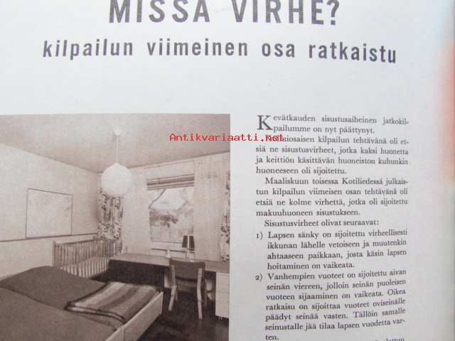 Kotiliesi 1965 nr 9 Toukokuu 1965. -mm. Seitsemän kaupungin suunnitelma, Neiti kansankouluntarkastaja Meeri Päivänsalo, Onko aitasta Huvilaksi, Parjattu pitkä
