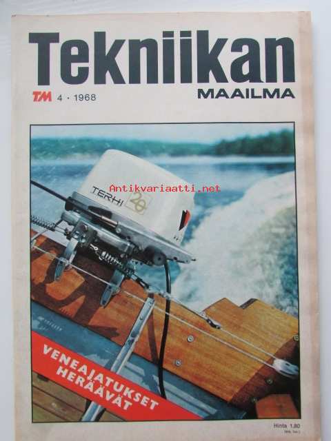 Tekniikan Maailma 1968 nr 4 -mm. Esiteltyinä ja kuvina Suomen ilmavoimien 130 konetta Moranesta Migiin, Suomen lennosto ajan tasalla myös sodan jälkeen, Lontoon venenäyttelyn satoa, 6 moottorikelkkaa esiteltynä, Ilmatyynyalus SRN 4, Enterprise H 15 Chrysler 55, Opel Kadett 1500, Katso kuvista tarkemmin mainokset ja sisältö.21 x 29 cm.
