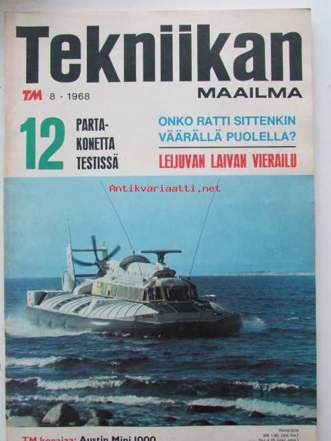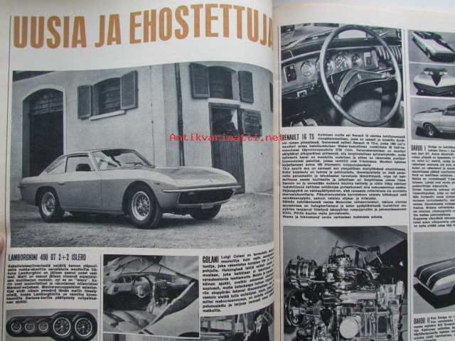 Tekniikan Maailma 1968 nr 8 -mm. Säätehdas, Uusia ja tehostettuja autoja Lamborghini 400 GT Islero, Renault 16 TS, Daroo II, Daroo I, Fokker D Vii, Austin mini 1000 Mk II, Leijuva laiva, Katso kuvista tarkemmin mainokset ja sisältö.21 x 29 cm.