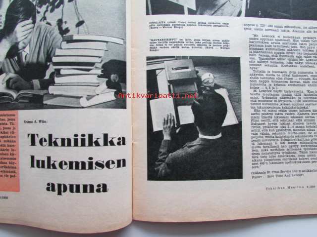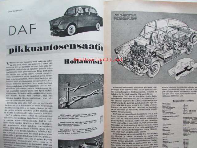Tekniikan maailma 1958 nr 4 -mm. Tekniikan fariseukset, Canon 8-T, DAF pikkuautosensatio Hollannista, Roima roikkuja, Ajan Sävel mopedi, Radioputken loppukiri, Matkaradio kesäksi, Suunnittelemme suurennuskoneen, TV-ääni ulalaitteilla, Rustaamme ruuhen, Katso kuvista tarkemmin mainokset ja sisältö. TM koeajo: Goggomobil Coupé, 1958. Asa-TV lehtimainoksessa Lenita Airisto, v 1958. Kaitafilmikamera, ym. katso kuvista tarkemmin mainokset ja sisältö21 x 29 cm.