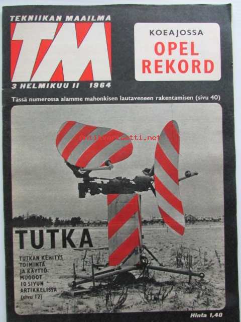 Tekniikan maailma 1964 nr 3 -mm. ajojahti on päättynyt, Opel rekord, Rattimuhvi, Tutka, Nyt rakennamme lautaveneen, kantosiipialus Deniso, Transistorien tarkaan