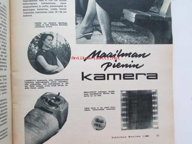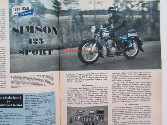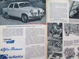 Tekniikan maailma 1959 nr 1 -mm. Valonarka sähkösilmä, Halpa 2-putkinen osaluettelo ja kuvat, ALfa Romea Giulietta t.i.,Agfa Silette automatic kamera, Simson 425 Sport, Maailman pienin kamera, Uusi harjoituskoneemme Fouga, Katso kuvista tarkemmin mainokset ja sisältö.21 x 29 cm.
