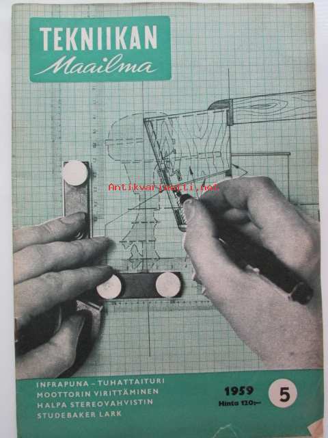 Tekniikan maailma 1959 nr 5 -mm. Veneen kuljetuskärryt rakennepiirustus, Cessna 170, Rabeneick Binetta III, Studebaker Lark, Skoda Octavia, Pinin Farina, Valtatie laivoille Englannissa, Infrapuna tuhattaituri, koekuvaa Mamiya 8 JE, Katso kuvista tarkemmin mainokset ja sisältö.21 x 29 cm.
