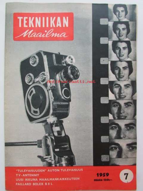 Tekniikan maailma 1959 nr 7 -mm. Bolex Paillard, TV antennit, Crescent Marin ja Valmet Terhi 3, Vanguard syntyy, Dodge Kingsway, Uusi ikkuna maailmankaikkeuteen, Onko autolla tulevaisuutta, Katso kuvista tarkemmin mainokset ja sisältö.21 x 29 cm.