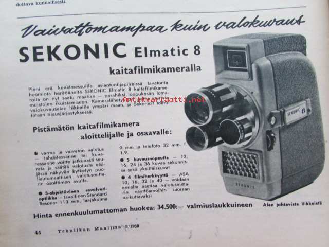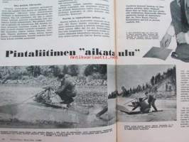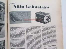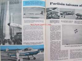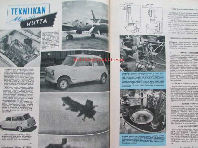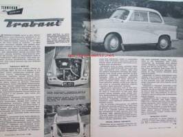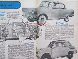Tekniikan maailma 1959 nr 8 -mm. Valokuva suurennuskoneella, Tranflex III taskuun, Lambretta LI 150, BMW 700, Communar, LLoyd 900, Trabant, Kantosiipialus Suomeen