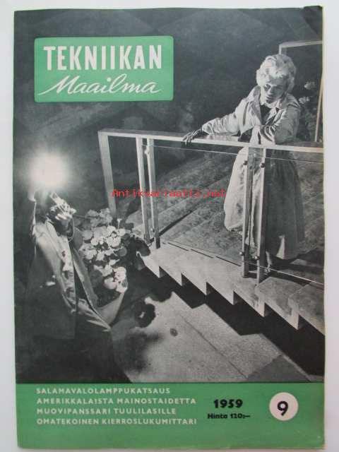 Tekniikan maailma 1959 nr 9 -mm. Omatekoinen kierroslukumittari, Kuinka auton polttoainemittari toimii, Muovipanssari tuulilasille, Bessamatic, Salamavalolamppu
