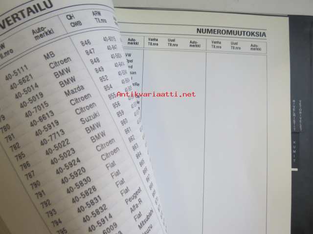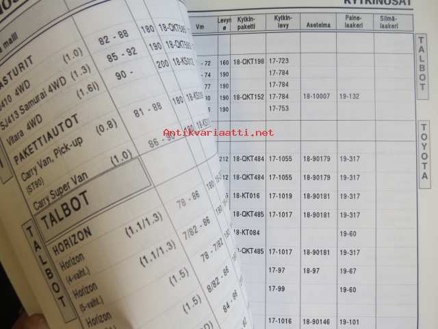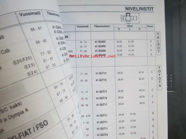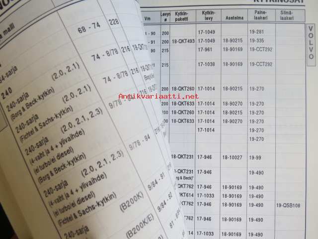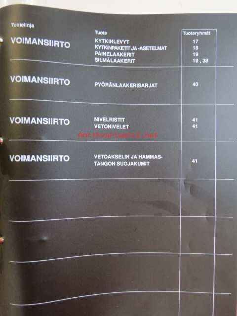 Voimansiirto, Kytkinosat, Pyörälaakerisarjat, Vetonivelet ja Nivelristit Varaosaluettelo 1997, Katso kuvista tarkemmin sisällys.
