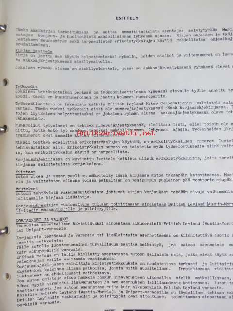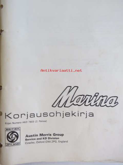 British Leyland Morris Marina (AKD 7803) - Korjausohjekirja, Katso tarkemmat mallit ja sisällysluettelo kuvista