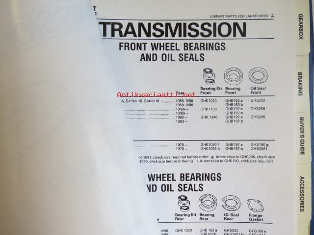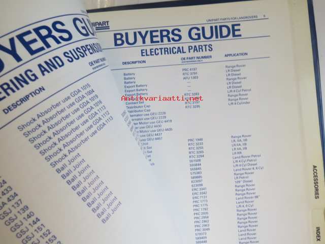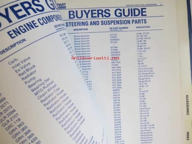 Unipart Land Rover Parts Catalogue - Varaosa luettelo, katso kuvista tarkemmin sisällys