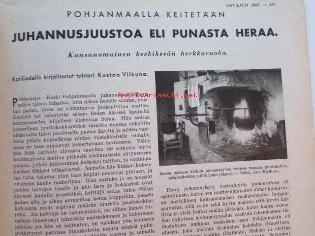 Kotiliesi 1936 nr 12 Kesäkuu (Kansi Martta Wendelin, aihe rippilapset) -mm. Pohjanmaalla keitetään juhannusjuustoa eli punaista heraa, Taipalsaari kirkko