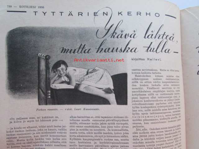 | Saatavilla | 1 kpl | | Julkaisuvuosi | 1936 | | Sivuja | 51 | | Kunto | K2 | | Sidonta/painoasu | Lehti | | Kielet | Suomi |