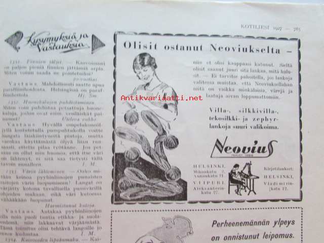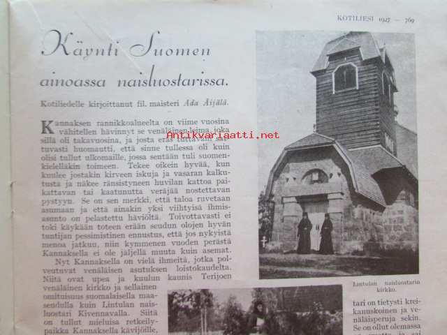 Yhtyneeet Kuvalehdet, 1927Kotiliesi 1927 nr 24 Joulu 1927 -mm. Käynti Suomen ainoassa naisluostarissa Lintula, Maikki Friberg, Suklaakakku, Kermakakku, Arkipäivän leipäkakku, Leppävirtalaisen lapasen kuviomalli. Tarkastele kuvista tarkemmin sisältöä.21 x 29 cm.