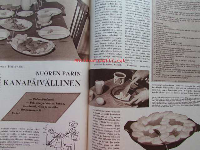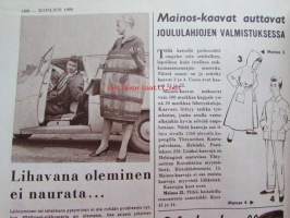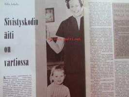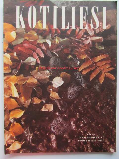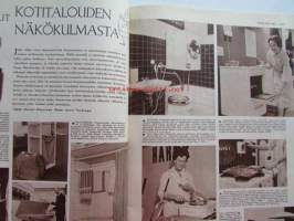 Kotiliesi 1960 nr 21 -mm. Talousopetta Maija-Lisa Peltonen Nuoren parin kanapäivällinen, Huonekalujen pintakäsittely, Suurmessut kotitalouden näkökulmasta, Katso kuvista tarkemmin sisällys.21 x 29 cm.