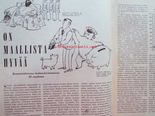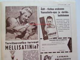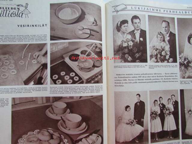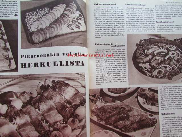 Kotiliesi 1960 nr 4 -mm. Vesirinkilät, Pikaruokakin voi olla herkullista Kinkkukääryleet, Makkara-omenavati, Koti syntyy suunnitellen, Oikeata Suomalaista matkamuistoksi, Kukat viihtyvät keittiössä, Matinpäivän aikaan, Katso kuvista tarkemmin sisällys.21 x 29 cm.