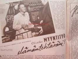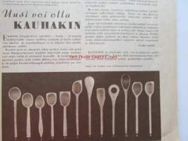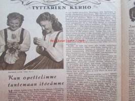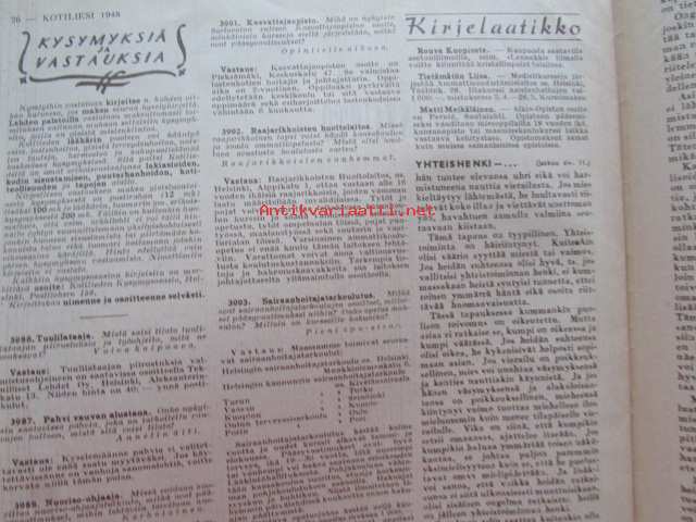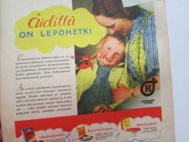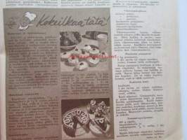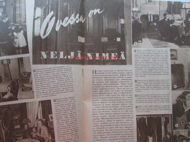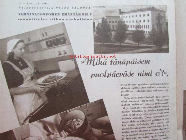 Kotiliesi 1948 nr 1-2 tammikuu - helmikuu. -mm. Yhteishenki avioliiton perusaste, Suurkaupungista pikkukaupunkiin, Ovessa on neljä nimeä, Me maalaiset ja muoti, Katso kuvista tarkemmin sisällys. Mustavalkoinen Kieku ja Kaiku -sarjakuva.21 x 29 cm.