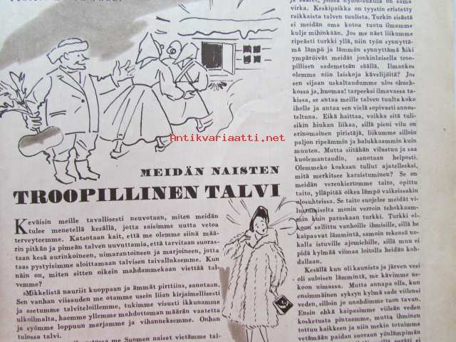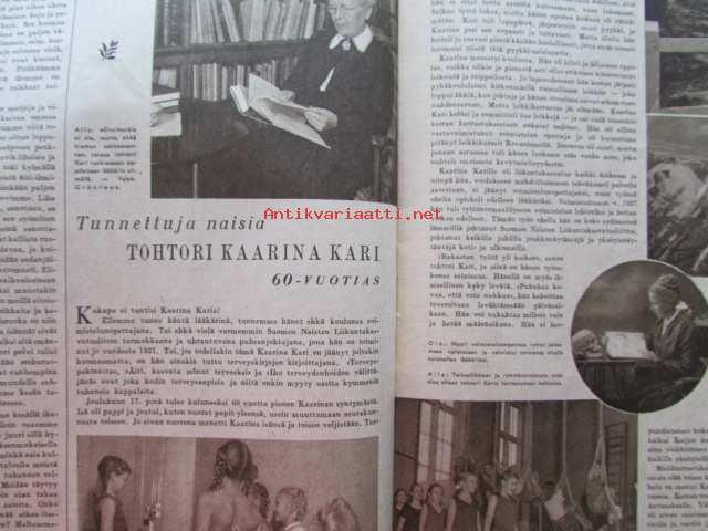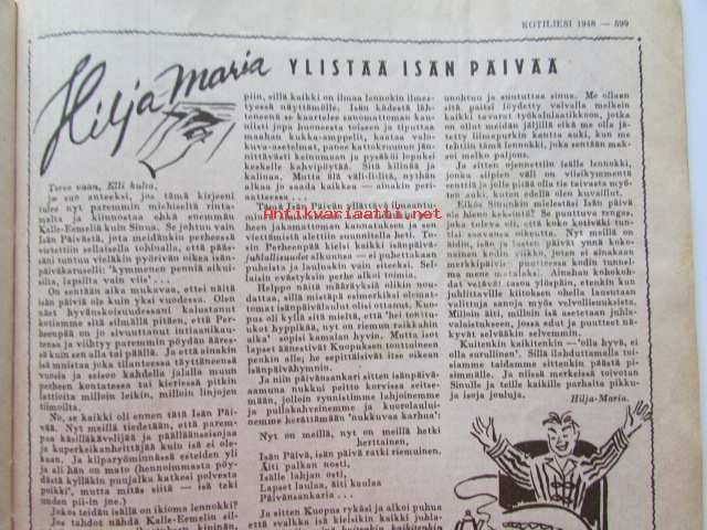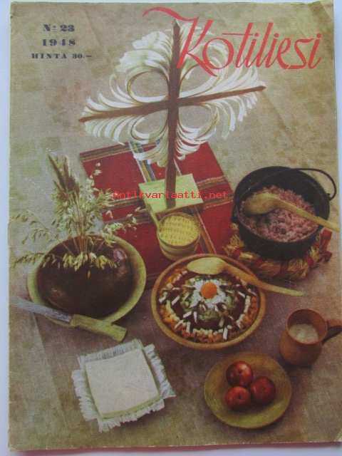 Kotiliesi 1948 nr 23 joulukuu -mm. Meidän naisten troopillinen talvi, Tunnettuja naisia Kaarina Kari, Lähettäkää kummikerho joulupukkinanne korpikotiin, Piparkakku namu parhain, Katso kuvista tarkemmin sisällys.21 x 29 cm.