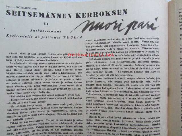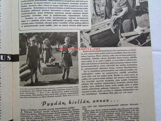 Kotiliesi 1944 nr 19 -mm. Pääjohtaja Arvi P. Poijärvi, "Maakunnan Äiti" Impi Sirkka 60-vuotias, Johtaja Alma Koskinen, Puolukat juurikkaiden seuraan, varhaisporkkanaa syyskylvösta, annetaan perheelle palttua (kaksi verileivän ohjetta), arkkitehti Katri Jahnsson kotiliesi naisten rakentamana, kauniit hautajaiset, Katso kuvista tarkemmin sisällys ja mainoksia.21 x 29 cm.