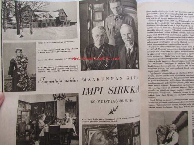 Kotiliesi 1944 nr 19 -mm.lokakuu Pääjohtaja Arvi P. Poijärvi, "Maakunnan Äiti" Impi Sirkka 60-vuotias, Johtaja Alma Koskinen, Puolukat juurikkaiden seuraan,