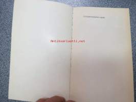 | Saatavilla | 1 kpl | | Julkaisuvuosi | 1971 | | Sivuja | 106 | | Painos | 1. | | Kunto | K2 | | Sidonta/painoasu | Nidottu (pehmeäk.) | | Kielet | Suomi |