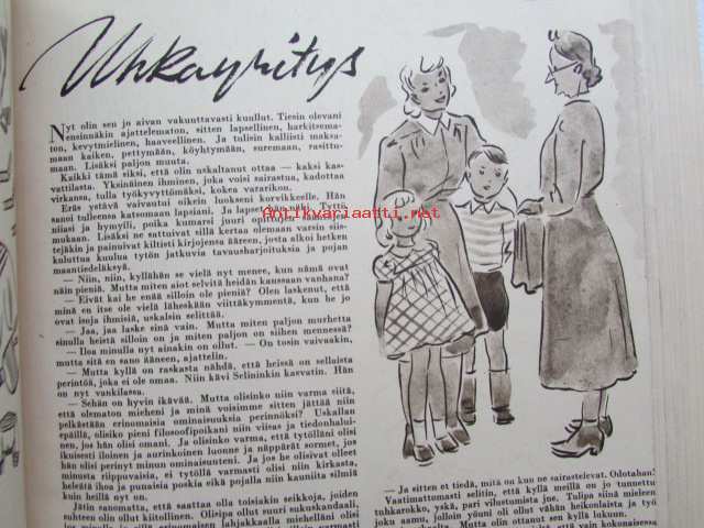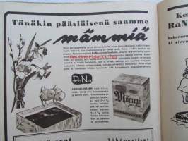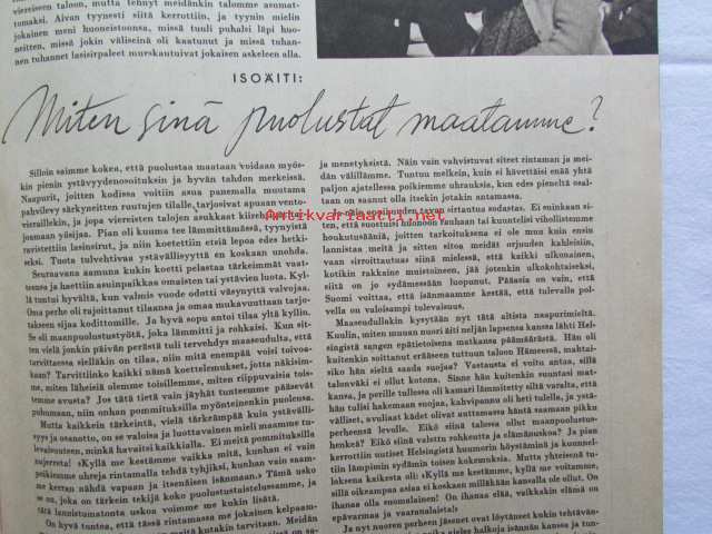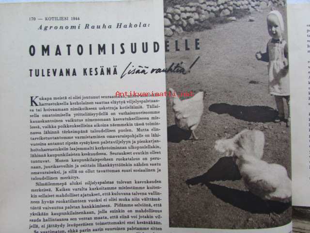 Kotiliesi 1944 nr 6 -mm. Vasikasta vaihtelua ruokiimme, Agronomi Rauha Hakoka omatoimisuudelle tulevana kesänä lisää vauhtia, Minna Canth, puvustomme kevätmuokkaus (Sorja-kaavojen esittely 8 sivua) Katso kuvista tarkemmin sisällys ja mainoksia.21 x 29 cm.