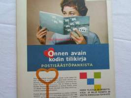Kotiliesi 1959 nr 20 -mm. Varjostimen teemme itse, isoisän A. G. Heinricius koti nuorikolleen, Tarkastaja Kerttu Toukolehto Ompeluopettajia ammattikouluihin, Puutarhanäyttelystä kotipuutarhaan, Katso kuvista tarkemmin sisällys ja mainoksia.