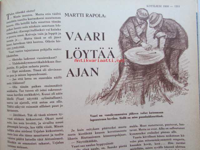 Kotiliesi 1959 nr 21 . Marraskuu 1959. -mm. Kuva v. 1903 Helsingin Tyttönormaalilyseon oppilaita ja v. 1959 kolme sukupolvea samasta koulusta Eva Noro, huonekalukuvia Eliel Saarinen, Louis Sparre, Armas Lingren, Arttu Brummer, Näin eletään Lapissa Pirttikoski, Katso kuvista tarkemmin sisällys ja mainoksia.