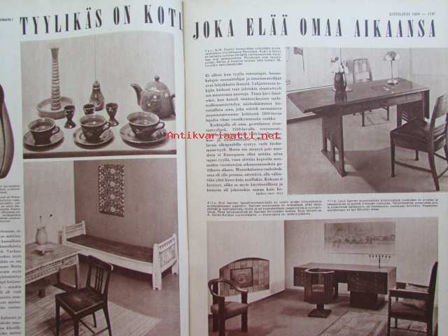Kotiliesi 1959 nr 21, marrask, Mm. 1903 Helsingin Tyttönormaalilyseon oppilaita ja v. 1959 kolme sukupolvea samasta koulusta Eva Noro, Huonekalukuvia Eliel Saarinen