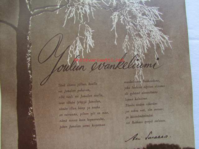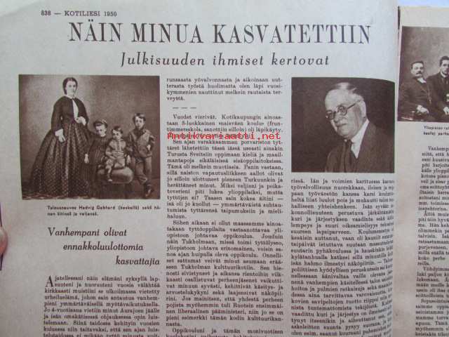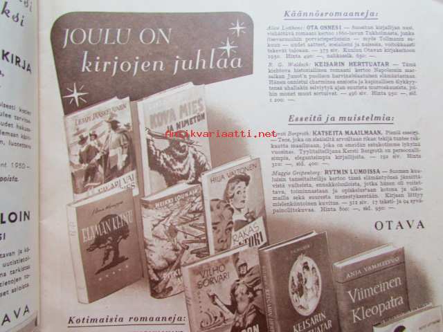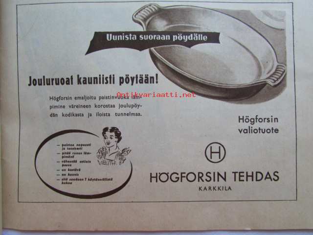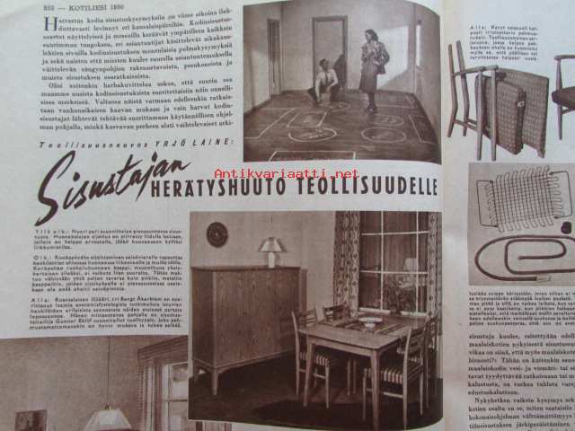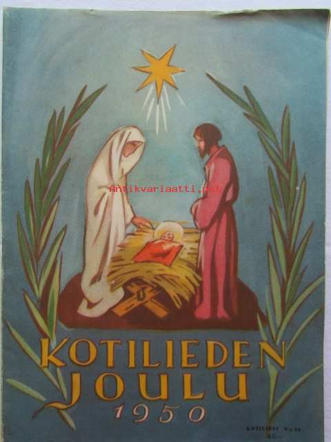 Kotiliesi joulu 1950 nr 24 -mm. Kansanedustaja Tyyne Leivo-Larsson Kunnan emäntiä, Teollisuusneuvos Yrjö Laine sisustajan herätyshuuto teollisuudelle, Pastori Ilmo Launis Viikunapuu viheriöi Pyhä maa jouluna 1950, Näin minut kasvatettiin, Talousneuvos Hedvig Gebhard, Erik Lönnroth, Kirjailija Tyyni Tulio, Kirjailija Imari Turja, sis. mm. seur. artikkelit / kuvat / mainokset; Fazer, Sokos huonekalunäyttely, OKA Kahvi Katso kuvista tarkemmin sisältö ja mainoksia, 21 x 29 cm.