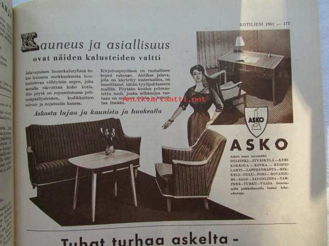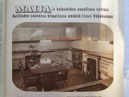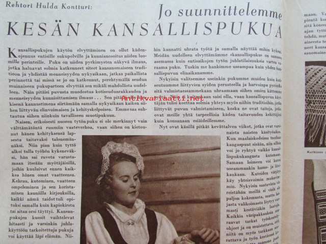 Kotiliesi 1951 nr 5 maaliskuu -mm. Ylikersantti Siivonen Komppanian "äiti" kotonaan, Hulda kontturi Kesän kansallispuku, Omenapaistos ja vaniljakastike,