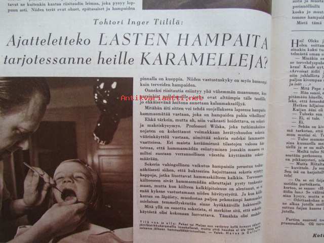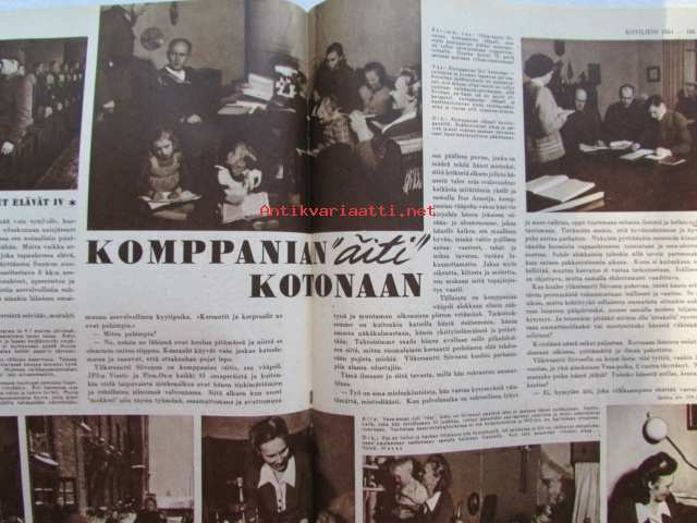 Kotiliesi 1951 nr 5 maaliskuu -mm. Ylikersantti Siivonen Komppanian "äiti" kotonaan, Hulda kontturi Kesän kansallispuku, Omenapaistos ja vaniljakastike, Keisarikeitto, Herkulliset kauraleivät, Sillipaistos, Katso kuvista tarkemmin sisällys ja mainoksia mm Kupittaan Savi, Heikki Jaakonaho eli Jaako-Heikki esitellään mainokseksessa. Neljä sukupolvea kuvissa mm. perheet Aaltolinna , Armala , Tervo , Jortikka , Aronkorpi sekä Ylkänen21 x 30 cm.