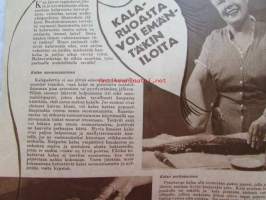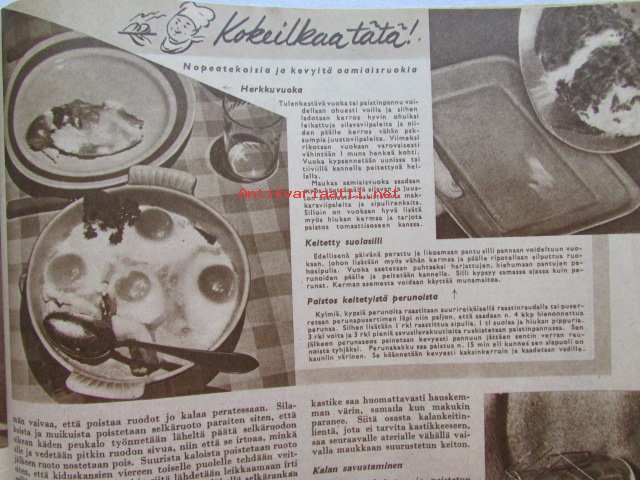 Kotiliesi 1951 nr 8 -mm. Irja Palonen esittelee hameita, Löytöretkillä luonnossa, Taikamaailma messuhallissamm. Lastentarhan kalusteet Alwar Aalto -mallistoa( puolen sivun kuva.) Markus-setä ja Pelastakaa lapset ry, Kalakastikkeet, Kalan savustaminen, Katso kuvista tarkemmin sisällys ja mainoksia. Takakannessa Silon pukimet, piirrosmainos.21 x 30 cm.