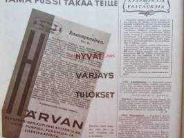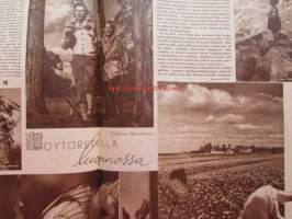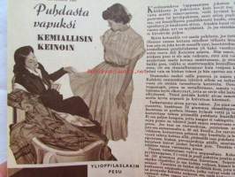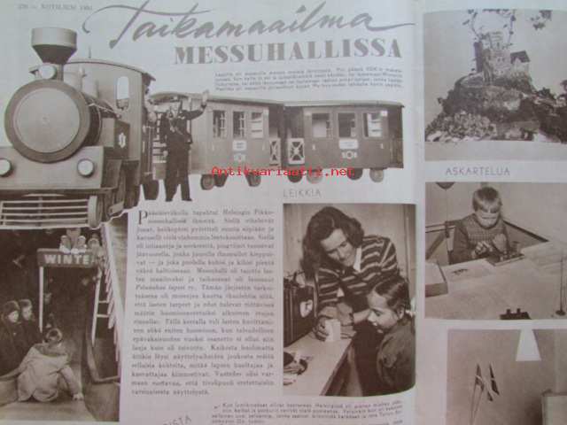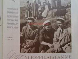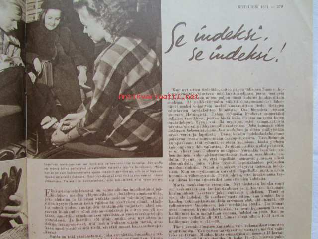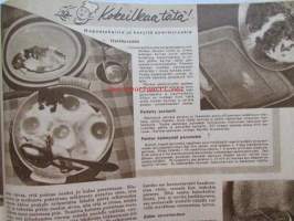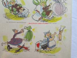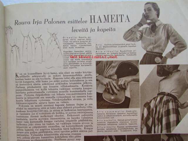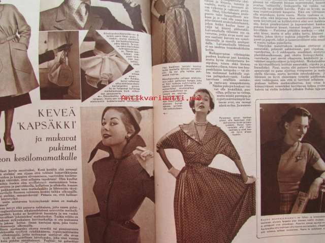 Kotiliesi 1951 nr 8 -mm. Irja Palonen esittelee hameita, Löytöretkillä luonnossa, Taikamaailma messuhallissamm. Lastentarhan kalusteet Alwar Aalto -mallistoa(