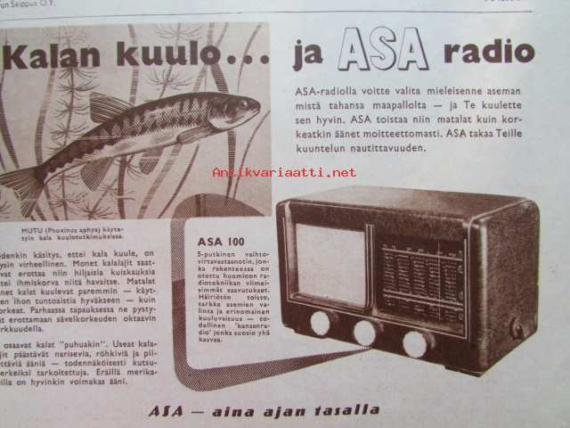 Yhtyneet Kuvalehdet Oy, 1951Ajankuvaa marraskuu 1951. ASA-radio mainos.21 x 30 cm. Onnittelukuvissa: 100. v: : Amalia Hautaniemi , Emma Toivonen 97-v : Liisa Kulju. 96-v : Heikki Honkanen , Vilhelmiina Saarinen , Kaisa Puurunen , Leena-Stiina Lahti , Hilma Saarela , Karoliina Virtanen