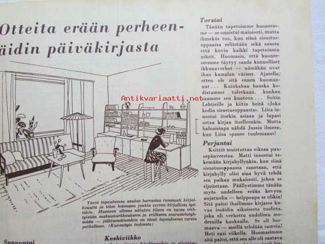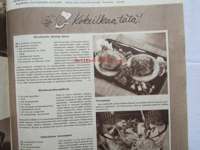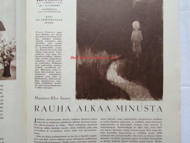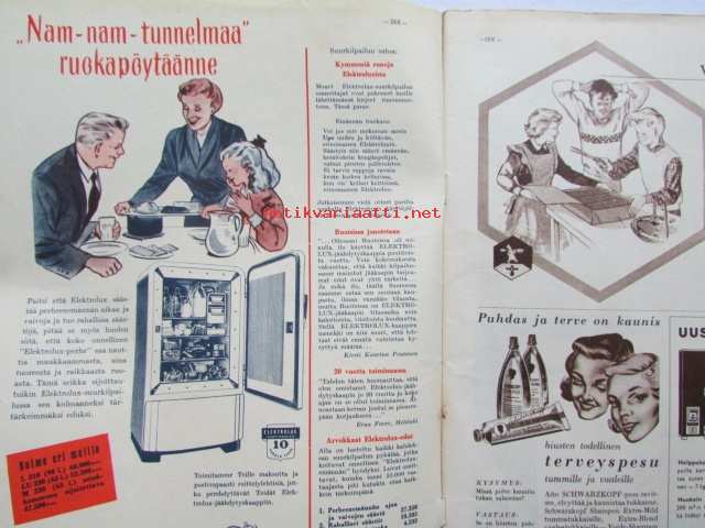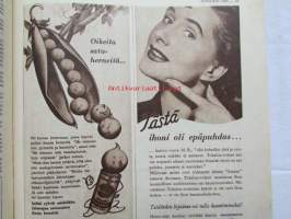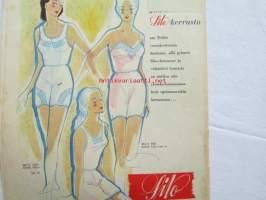 Kotiliesi 1954 nr 1 Tammikuu 1954. mm. Teinityttö kilpailun parhaat Päivikki Härö Sirkka Tunkelo Hilkka Uuskallio, Perboraatti ei ole pesuaine, Taideteollisuus ja työteho Skanno, Artek, Eila Meiling, Sisustusarkkitehti Ilmari Tapiovaara, Unkarilainen lammaspata, Katso kuvista tarkemmin sisällys ja mainoksia. Silo -mainos takakannessa21 x 30 cm.