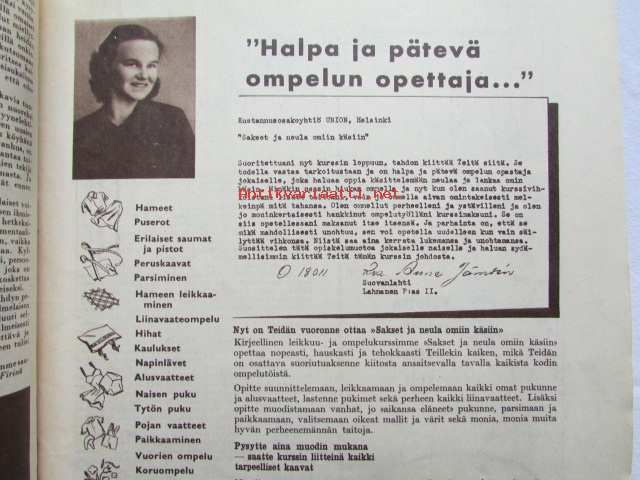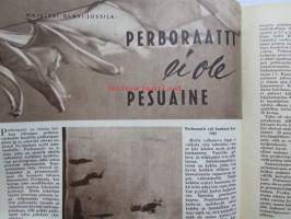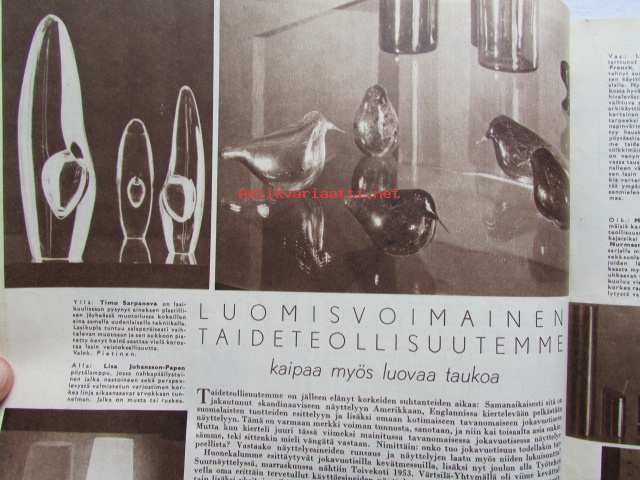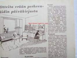 Kotiliesi 1954 nr 1 Tammikuu 1954. mm. Teinityttö kilpailun parhaat Päivikki Härö Sirkka Tunkelo Hilkka Uuskallio, Perboraatti ei ole pesuaine, Taideteollisuus