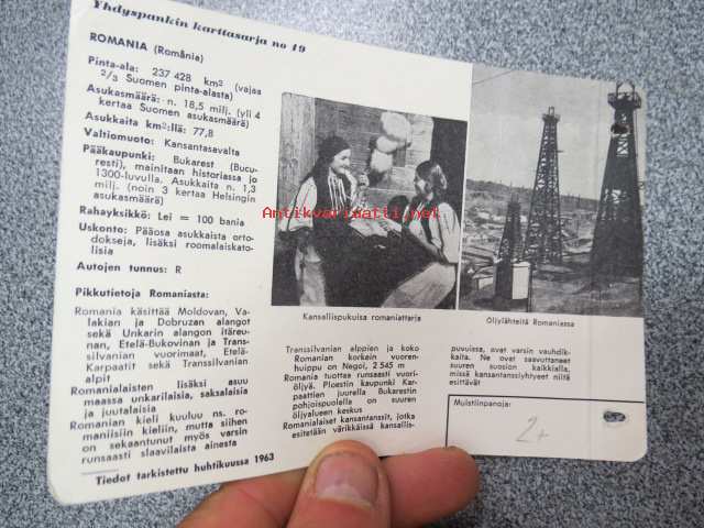 Romania - Yhdyspankin karttasarja nr 19 -keräilykortti