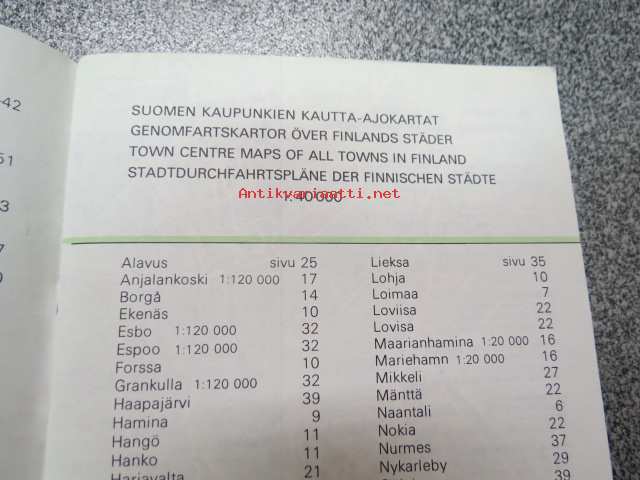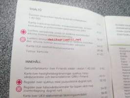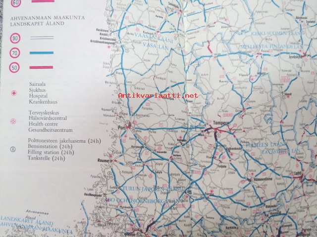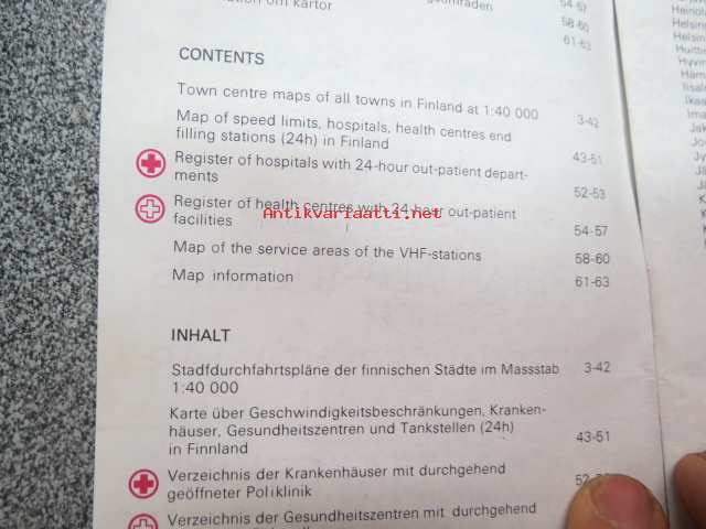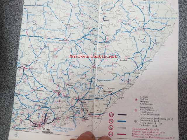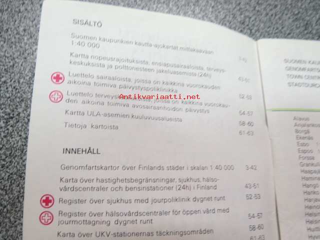 Kaupunkien kautta-ajokartat, tiekohtaiset nopeusrajoitukset, ensiapusairaalat ja terveyskeskukset / Genomfratskartor över städer, hastighetsbegränskningar, förstahjälpssjukhus och hälsovårdscentraler