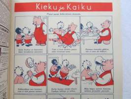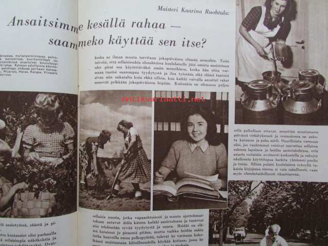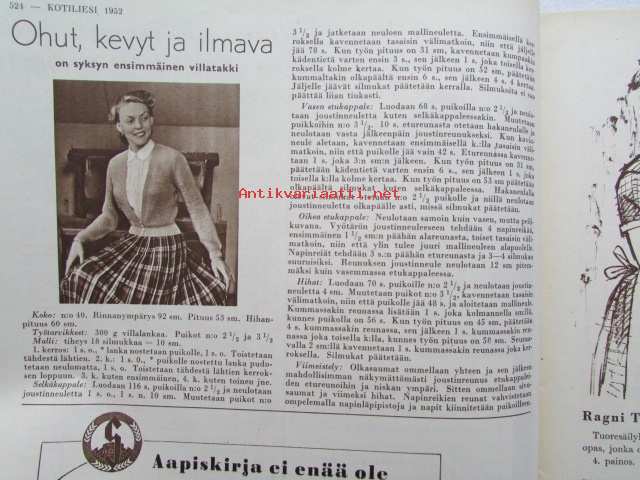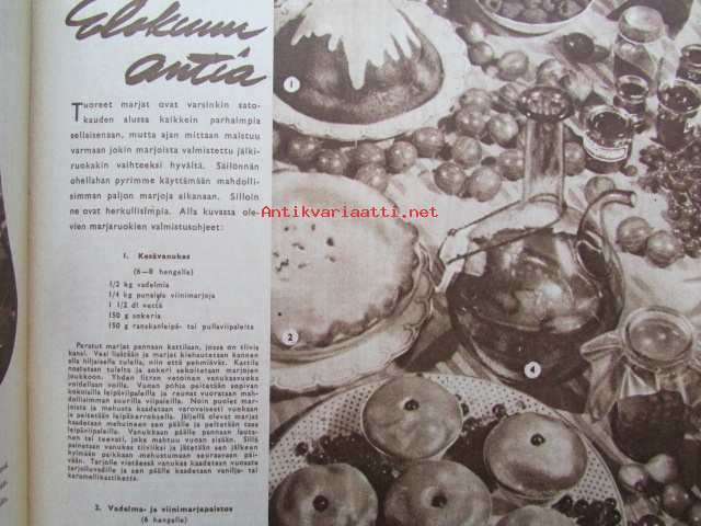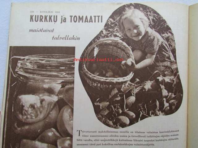 Kotiliesi 1952 nr 16 -mm. Elokuun antia Viinimarjajuoma, Vadelma ja viinimarjapaistos, Kesävanukas, Turun Mamman etikkakurkkuja, Oletko toinen nainen, Naistenkylä Olympialaisten aikaan , Tyyni Tuulio Järvenpää esitellään, Muuttuuko ilmastomme, Katso kuvista tarkemmin sisällys ja mainoksia. mm värikuvassa kaarina Tuokkolan sommittelema täkänä21 x 30 cm.