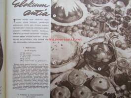Kotiliesi 1952 nr 16 -mm. Elokuun antia Viinimarjajuoma, Vadelma ja viinimarjapaistos, Kesävanukas, Turun Mamman etikkakurkkuja, Oletko toinen nainen, Naistenkylä