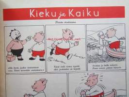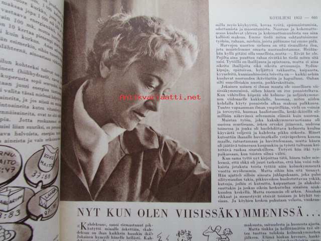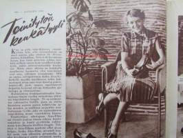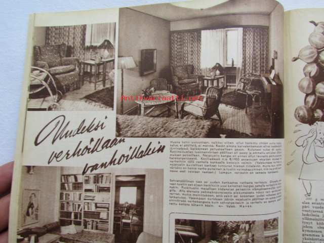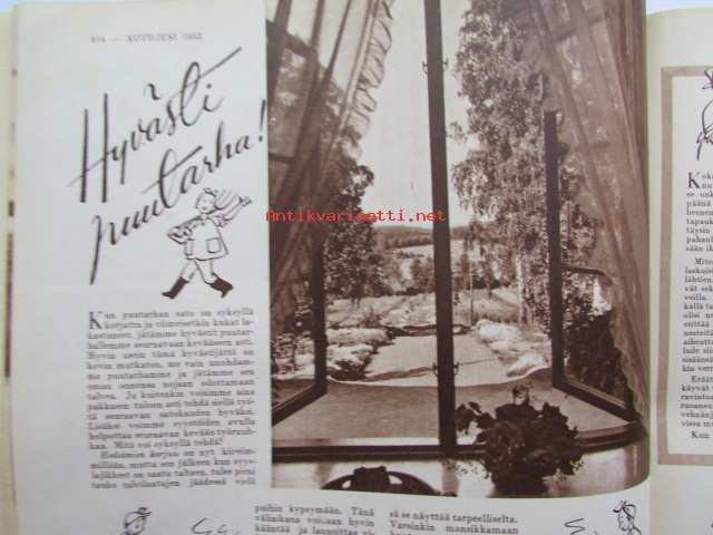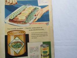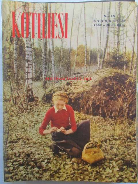 Kotiliesi 1952 nr 18 syyskuu -mm. Osastopäälikkö Kuusisto Anna järkesi silittää, runsaasti sisustuskuvia, Hilda Suurnäkki esitellään. Ruokaohjeita: Purjovuoka, Palsternakkalaatikko, Porkkanamunkki, Purjovuoka, Kukkakaali sienimuhennos, Katso kuvista tarkemmin sisällys ja mainoksia.21 x 30 cm.