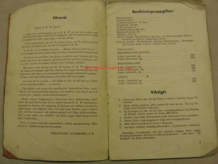 Philipsons, 1938Käyttöohjekirja ruotsiksi.