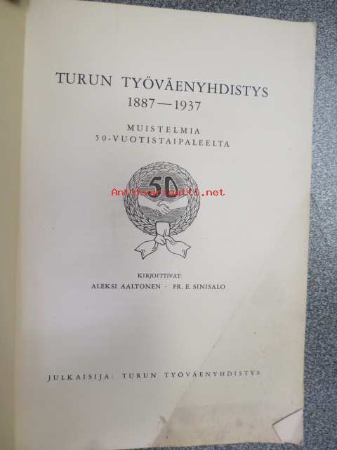 Aleksi Aaltonen, Fr. E. Sinisalo, Turun Työväenyhdistys, 193716 x 23 cm.