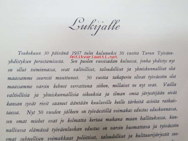 Turun Työväenyhdistys 1887-1937 Muistelmia 50-vuotistaipaleelta