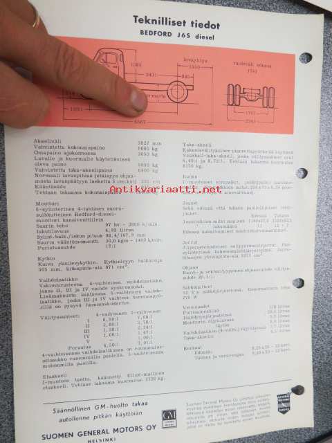 Bedford J 6 S diesel - teknilliset tiedot -myyntiesite