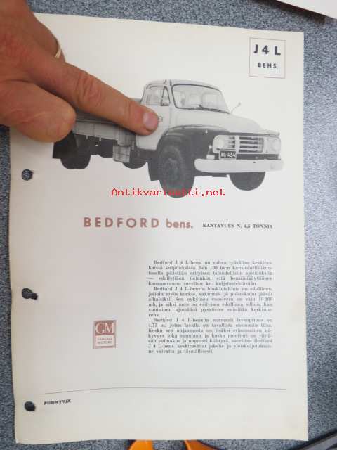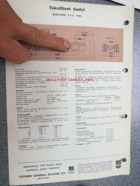 Bedford J 4 L bensiini - teknilliset tiedot -myyntiesite, auto on S.E. Mäkinen -yhtiön AG-434